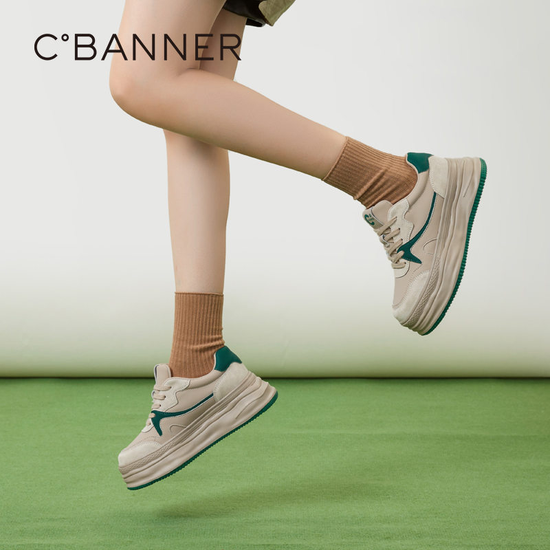 千百度女鞋秋季新款休闲板鞋轻盈溶解时尚厚底板鞋增高舒适