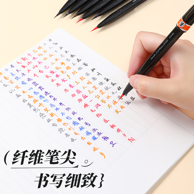 日本Pentel派通秀丽笔Brush美术生可用速干彩色细致软头笔临摹字帖练字科学毛笔贺卡手帐水彩笔