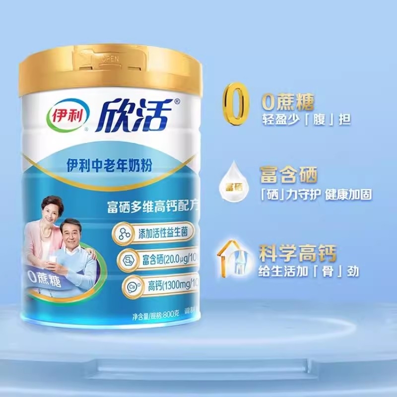 伊利欣活中老年高钙奶粉正品官方旗舰店成人老年人高蛋白营养牛奶