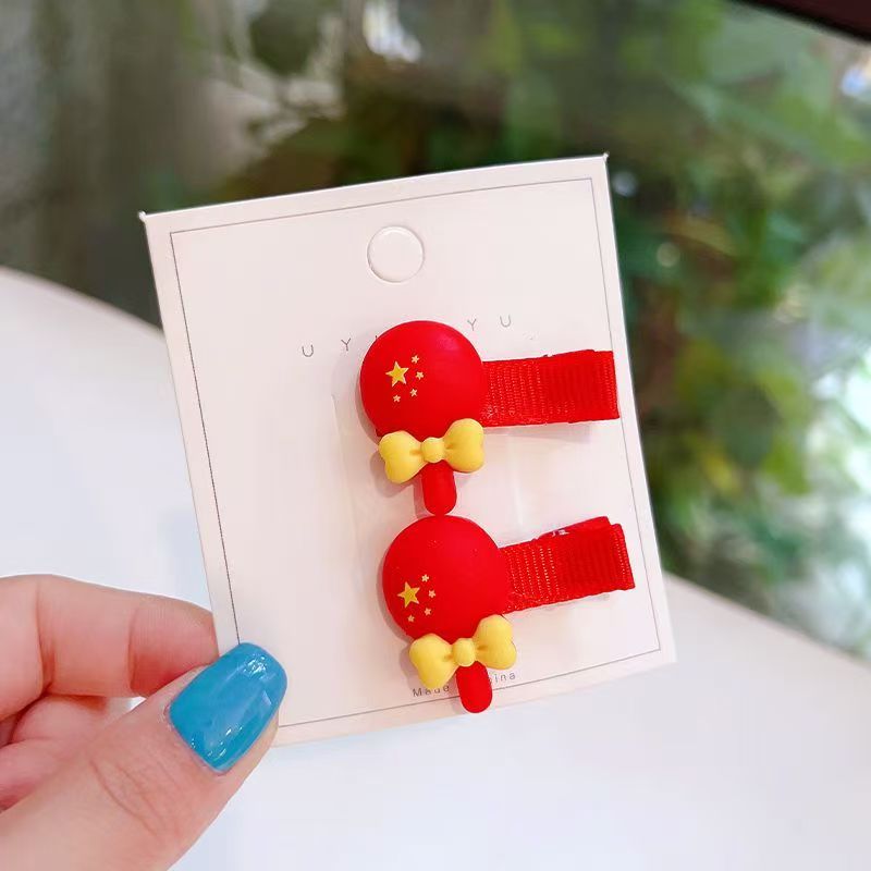 国庆节红旗发夹发圈儿童头绳不伤发宝宝红色喜庆节日发卡国潮发饰