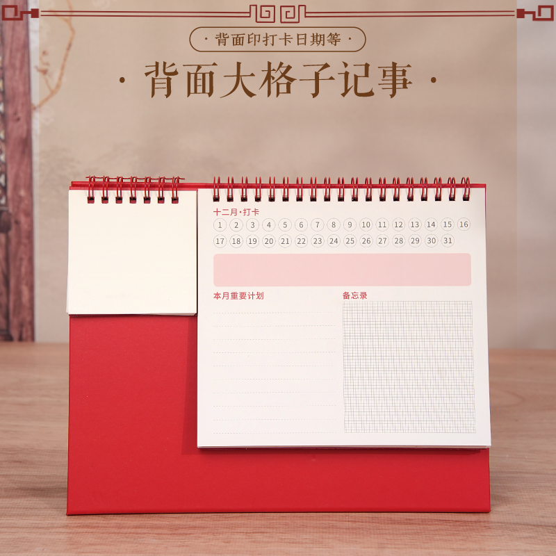 得将 2026年新款中国风流苏台历创意桌面摆件月历自律打卡计划本便签学校企业可定制logo