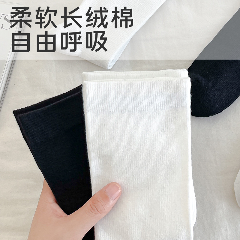 5双装 往往精梳棉质3A抗菌女士袜子中长筒袜纯色休闲男袜秋冬季
