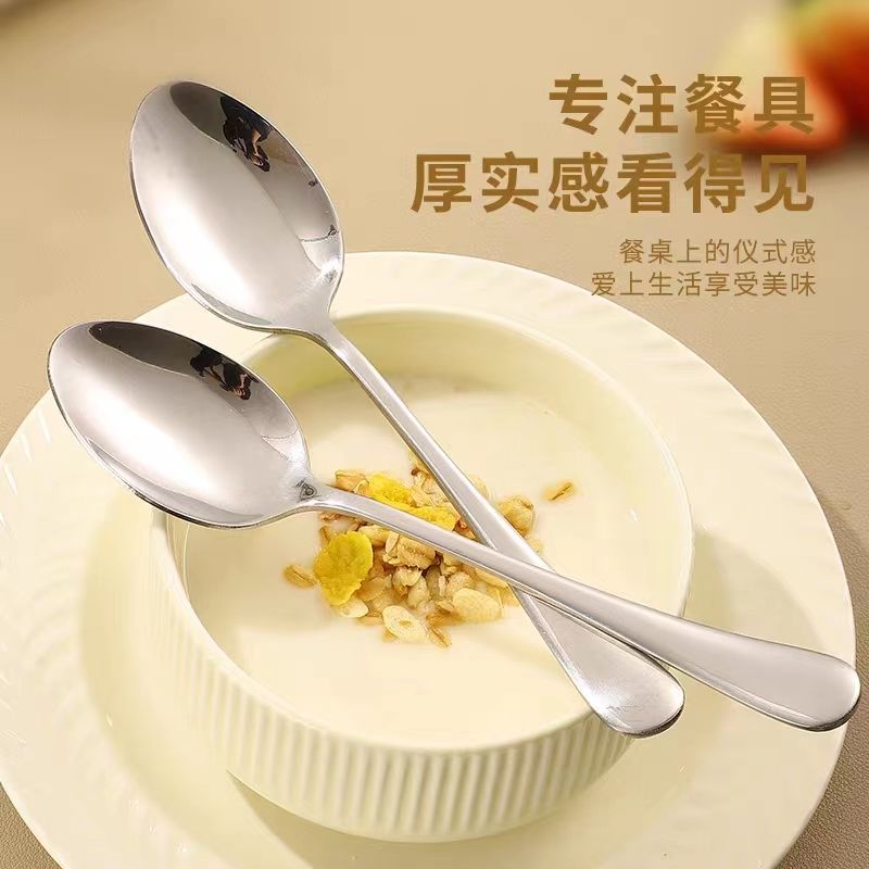 304不锈钢勺子喝汤学生汤匙高档家用吃饭勺汤勺长柄尖头食品级