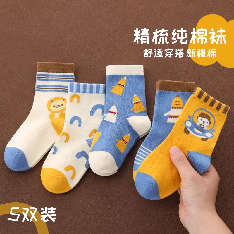 纯棉童袜春秋款夏季薄款防臭不起球男女袜子全棉中筒袜时尚儿童袜