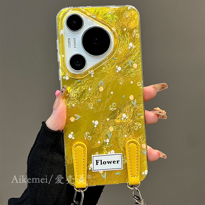 适用华为pura70pro+手机壳ins小众姜黄色小碎花p60pro腕带手提挂绳p70pro双层pura70全包硅胶mate60pro防摔女
