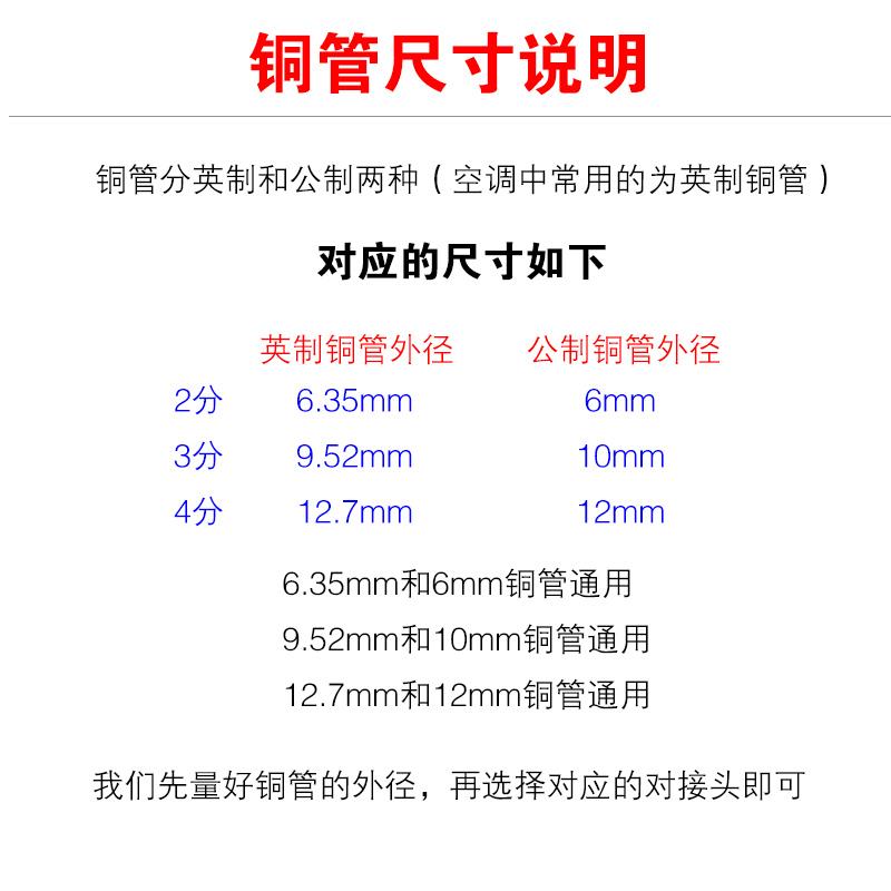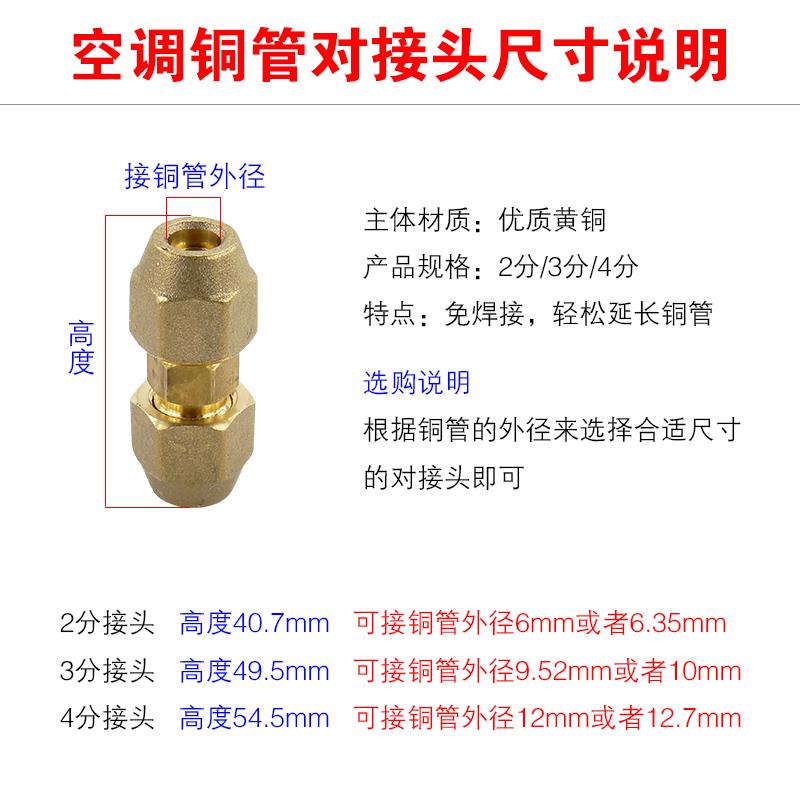 适用空调铜管对接头工具 延长空调铜管快速接头免焊接头1匹/1.5匹