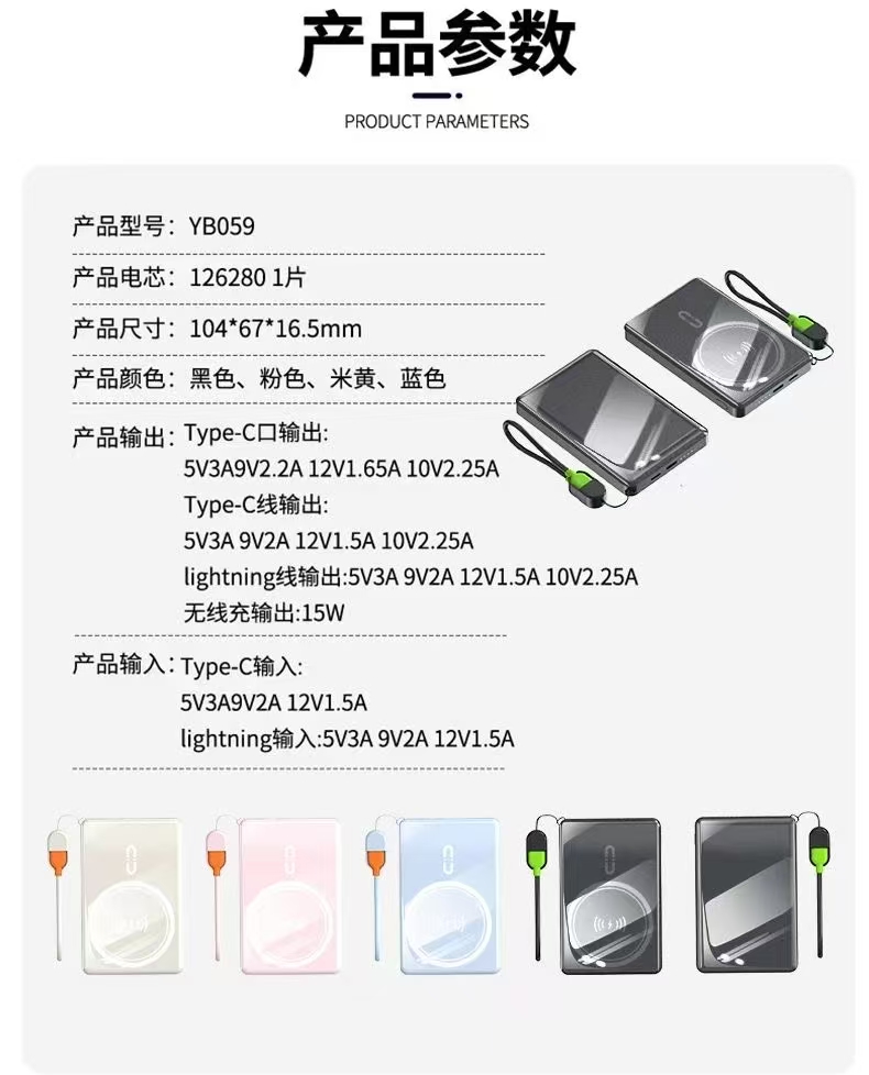 磁吸充电宝自带线快充超薄便携迷你官方正品无线移动电源
