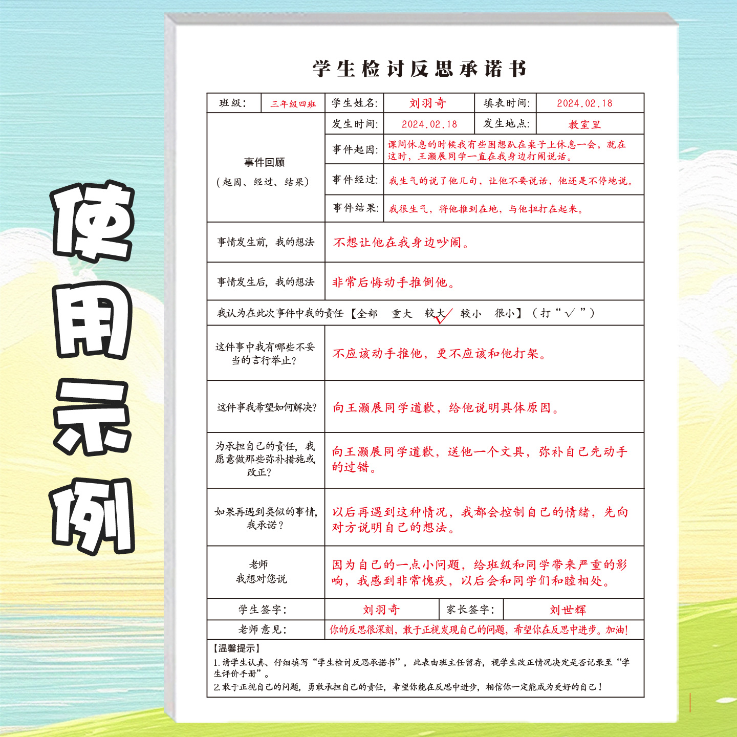 学生反思承诺书班级管理违反课堂纪律课堂秩序安全卫生等方面适合反思改正承诺书小学生中学生班级高效管理