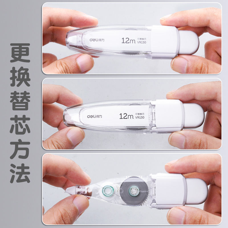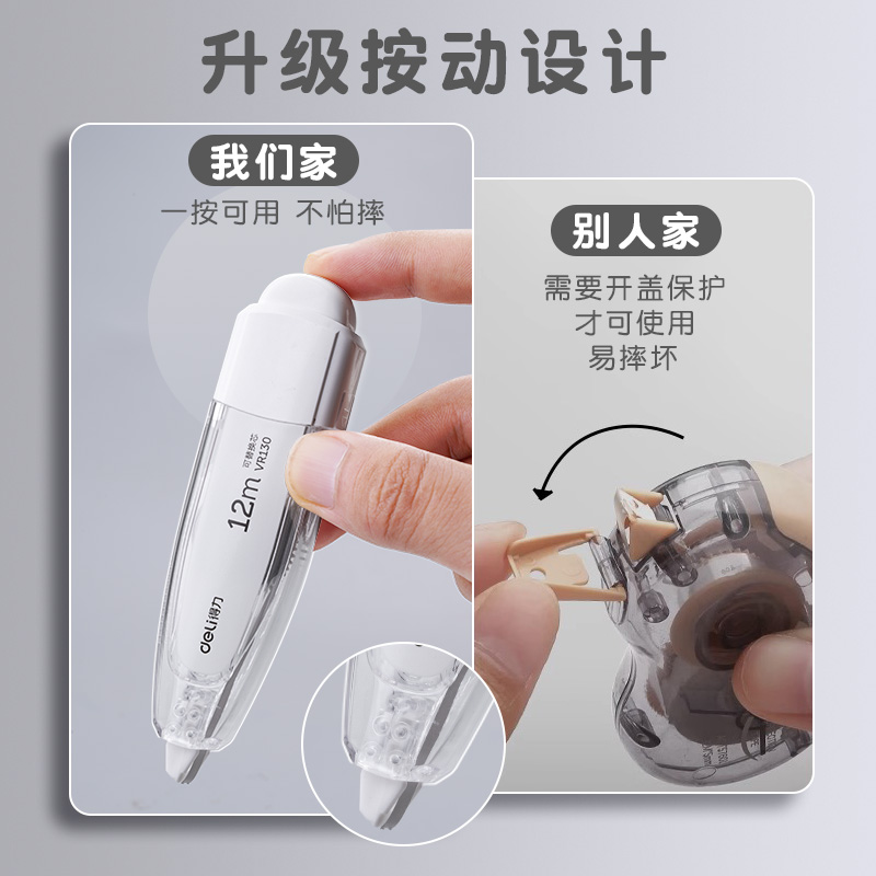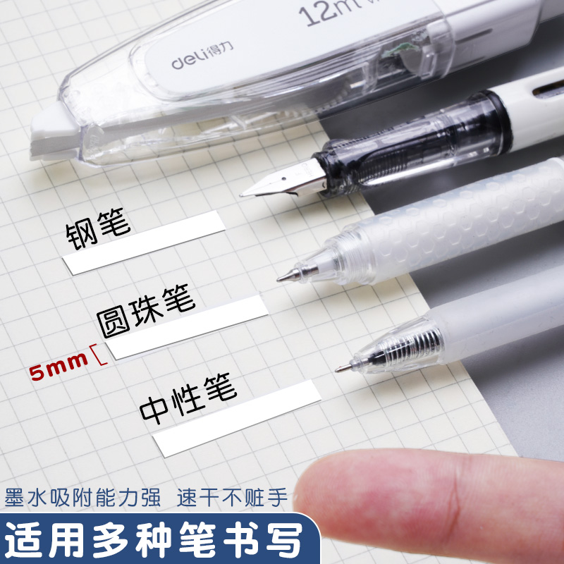 得力修正带学生用涂改带可换替芯学生用网红黑科技大容量改错带小学生专用静音按动改字休正纠正笔式修正贴