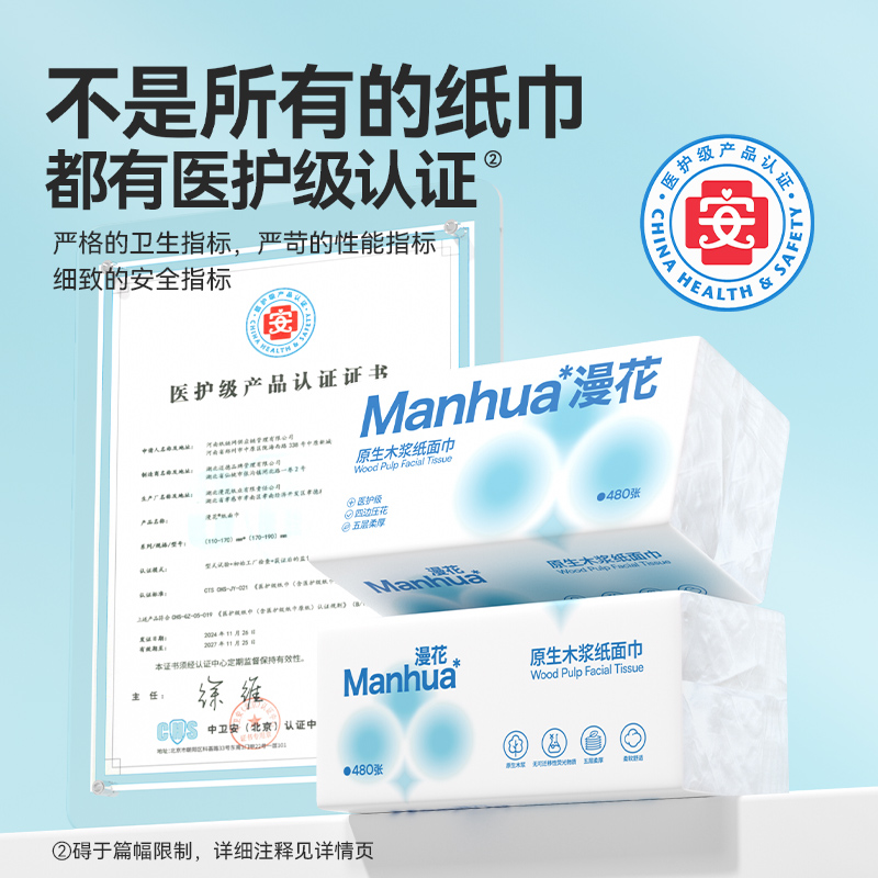 漫花加厚卫生纸实惠装家用抽纸加大餐巾纸无香原木医护级原生木浆