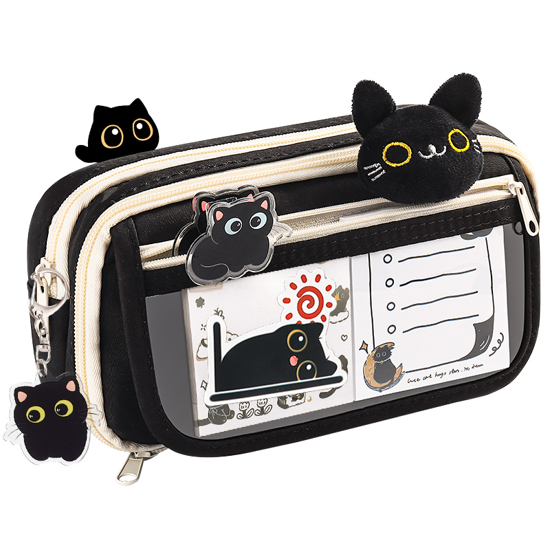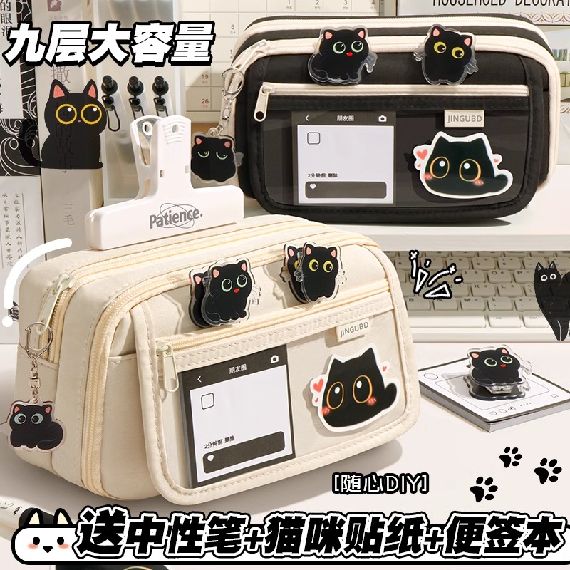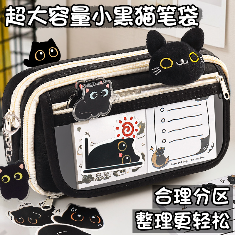 小黑猫笔袋小学生高颜值超大容量多功能文具盒2025新款小男孩女孩透明高级实用笔盒儿童初中生手提袋透明痛包