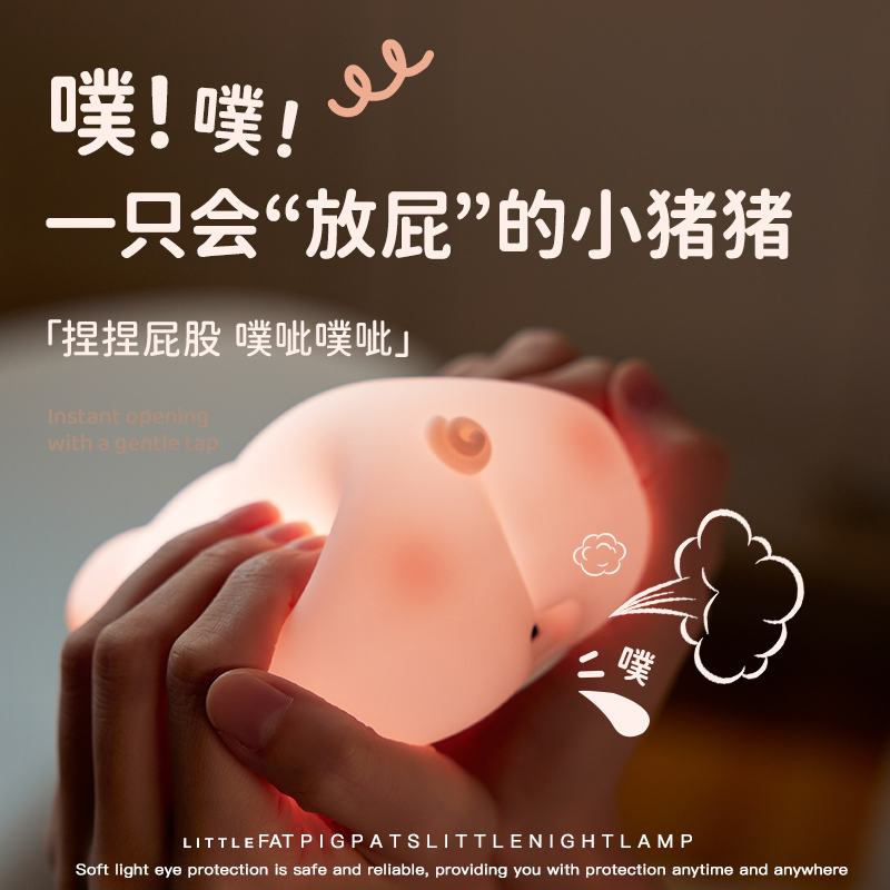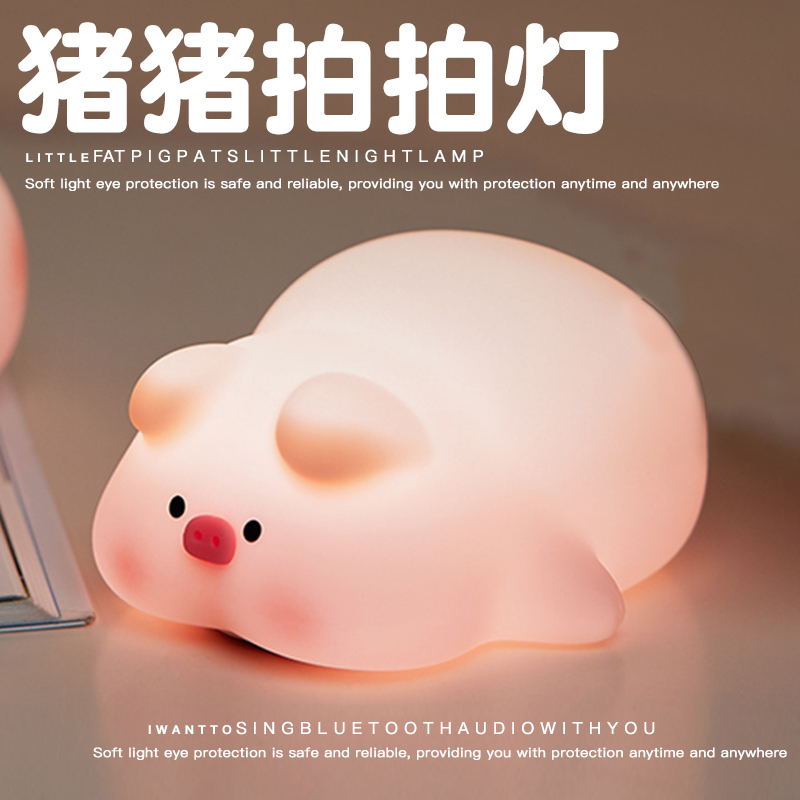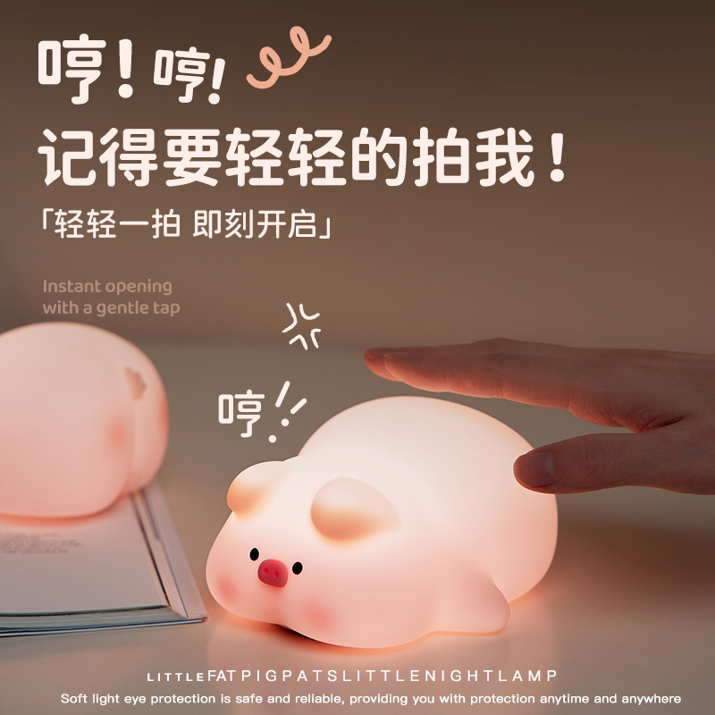 屁哥猪猪小夜灯拍拍床头灯氛围婴儿喂奶护眼卧室充电睡眠生日礼物
