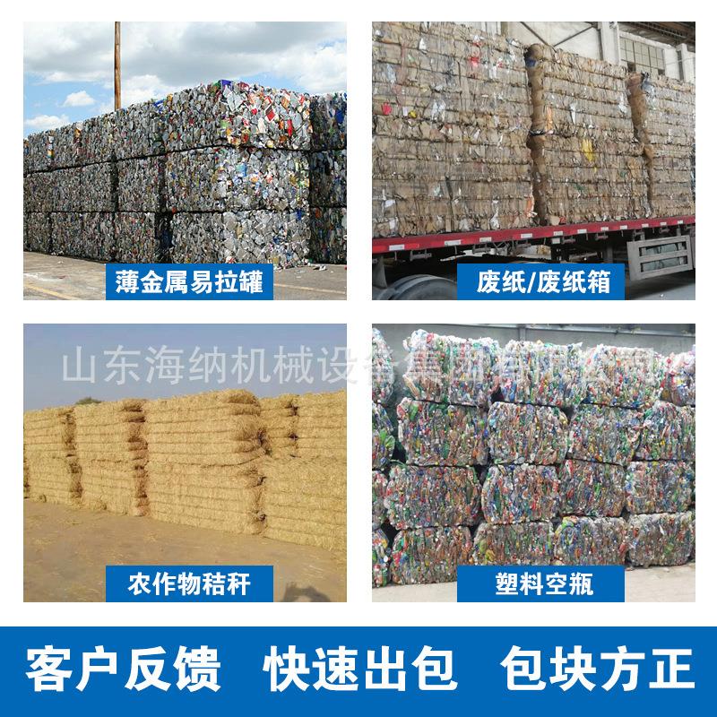 卧编废罐纸液压打包机织袋塑料120T瓶打包机易拉服装式打包机