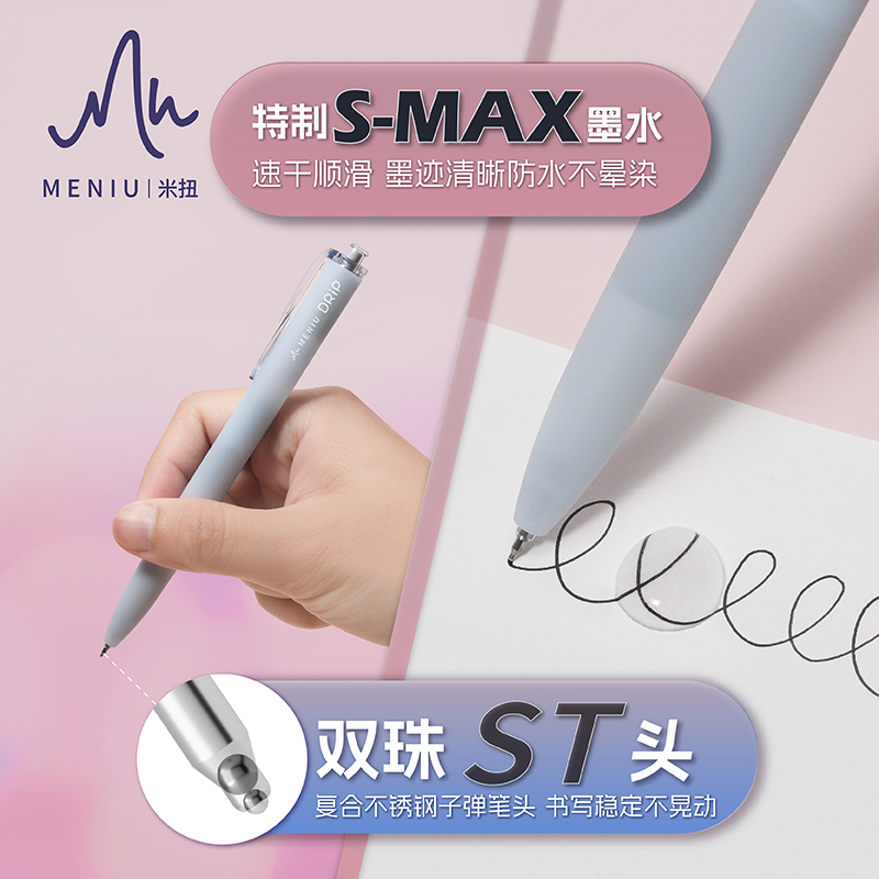 MENIU米扭中性笔光影派对小滴笔按动水笔黑色0.5双珠ST头速干浓墨替芯低重心顺滑学生用考试刷题笔签字笔新款