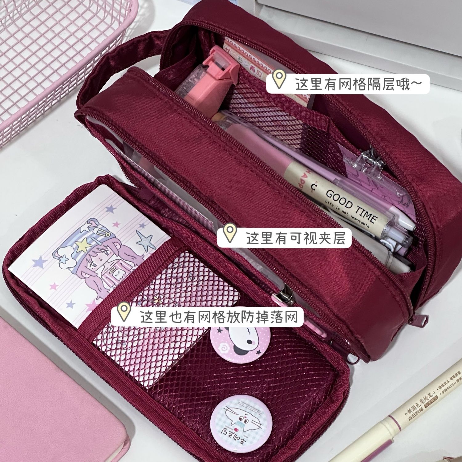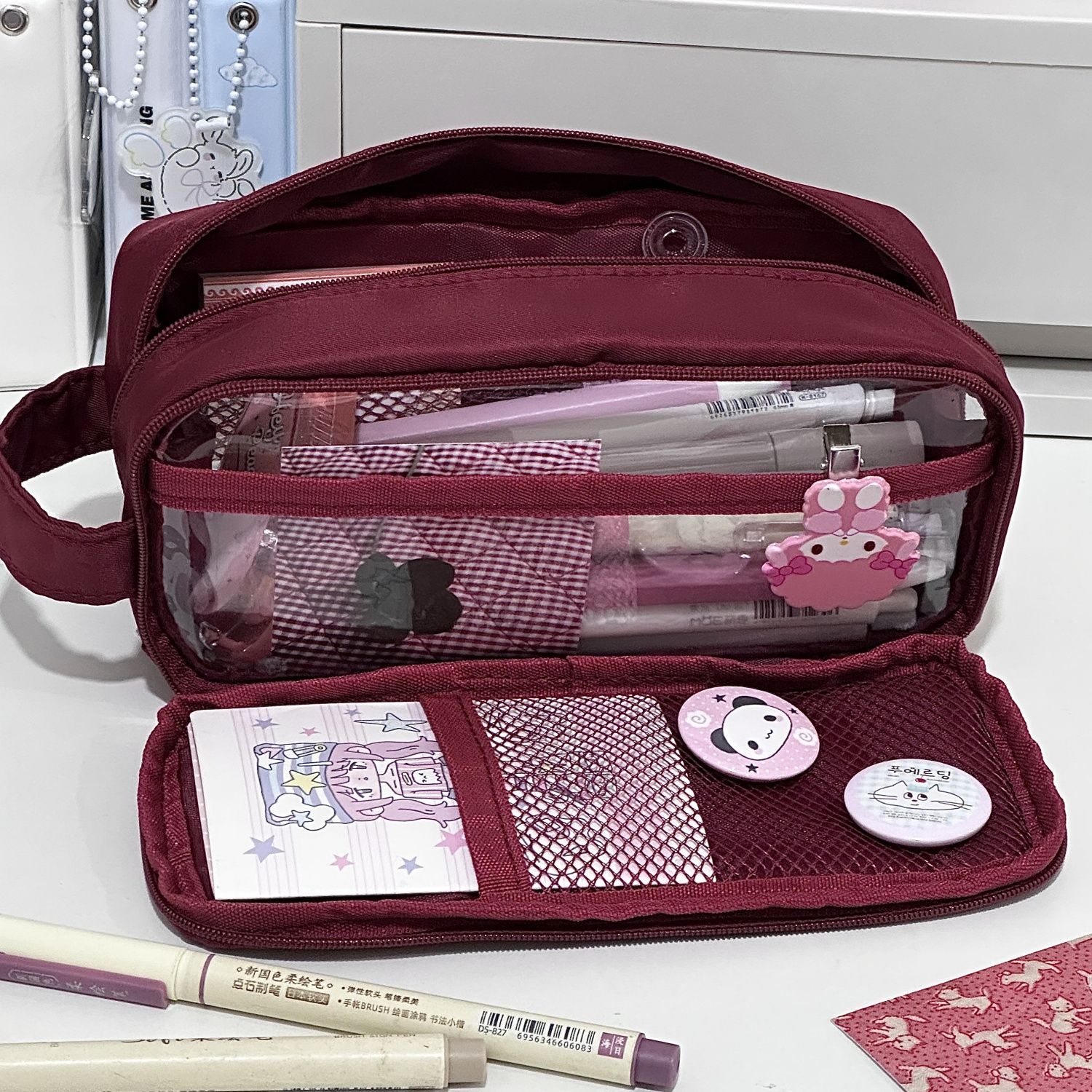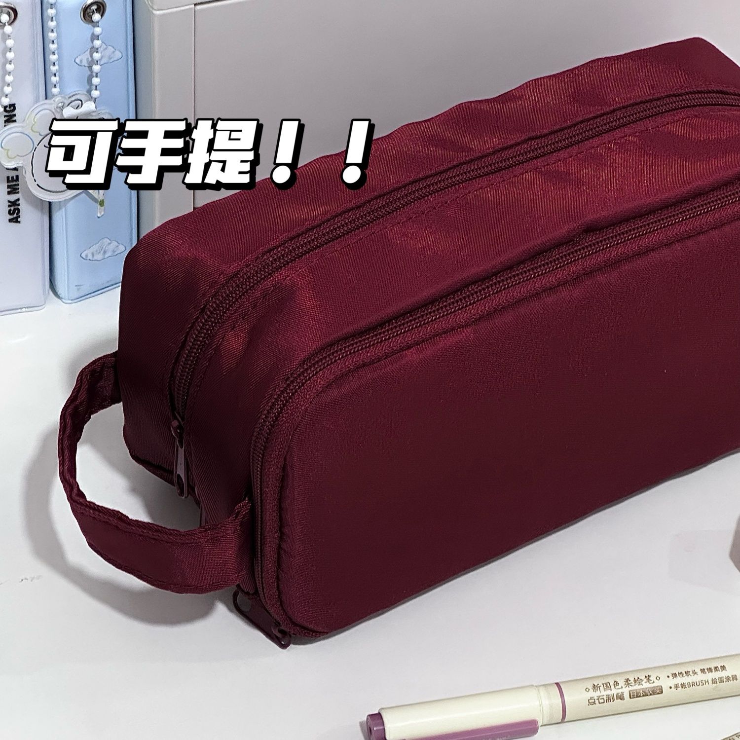 简约纯色多功能笔袋ins小众风高颜值大容量初中生手提痛包文具袋