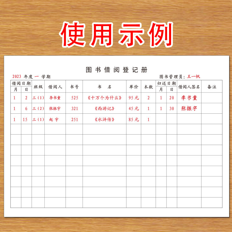 图书借阅登记册幼儿小学生初中生通用版用于借阅图书登记借阅人借阅时间等图书借阅登记手册