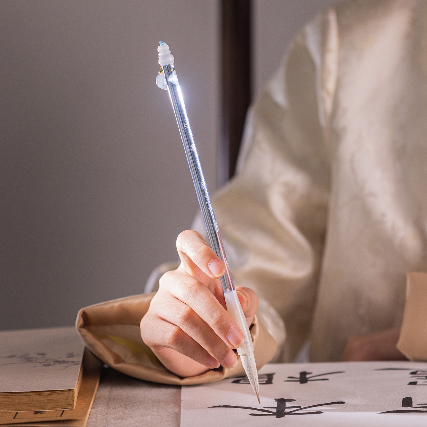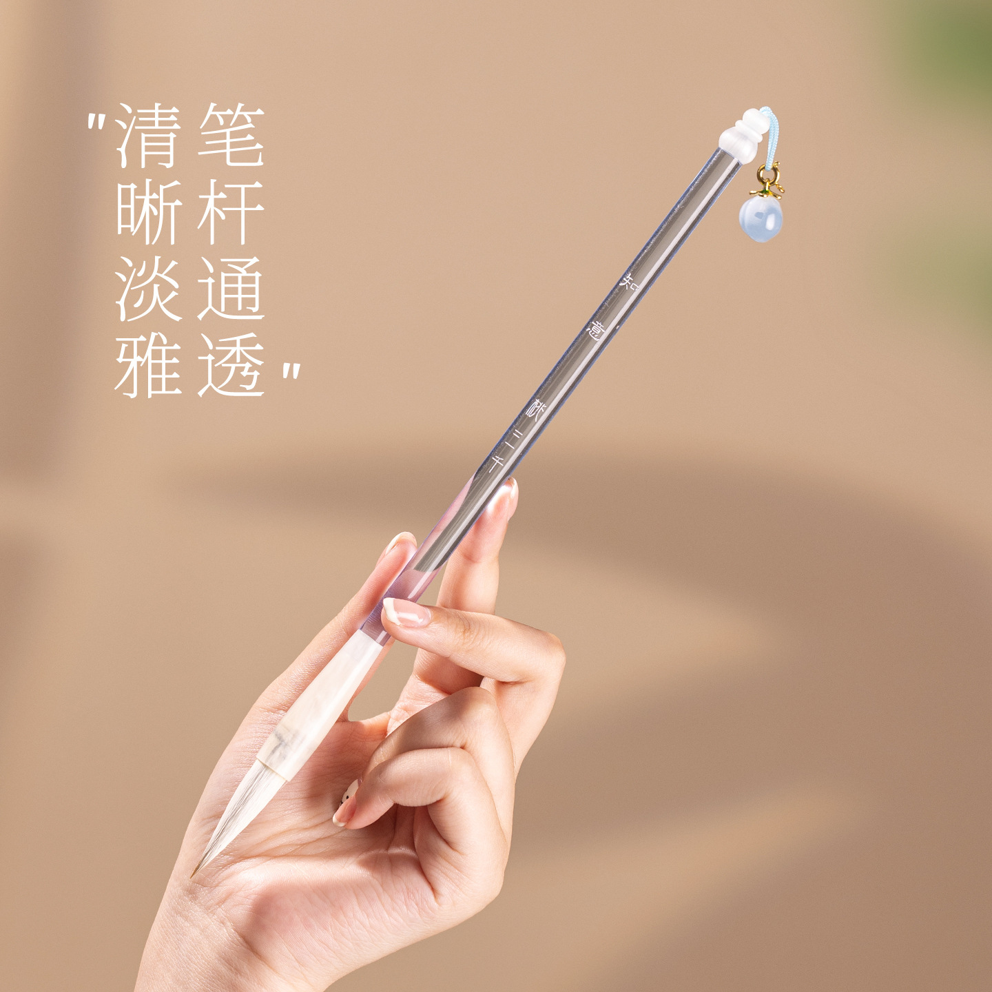 桃三千知意兼毫毛书法专用书法字高颜值女生蓝色玻璃水晶透明杆