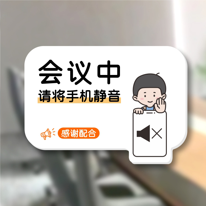 办公室会议中手机静音标识提示牌会议结束关闭设备随手关灯提醒贴