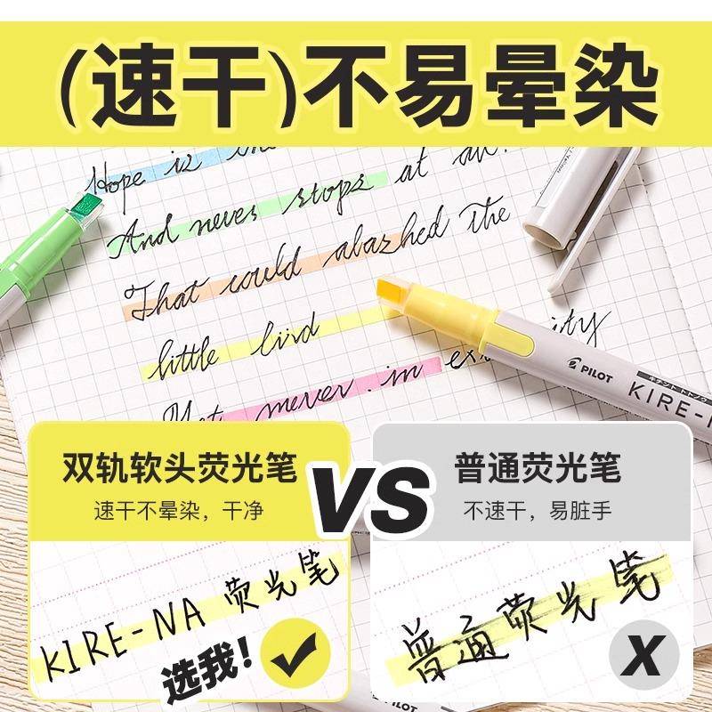 【新品】日本Pilot百乐荧光笔KIRE-NA奇丽奈双轨软头荧光双头标记笔速干学生用手账文具记号做笔记彩色划重点