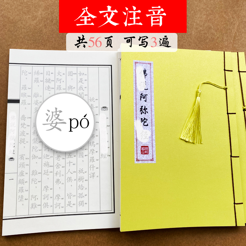 抄经本佛说阿弥陀经全文注音完整仪轨静心抄经练字帖毛笔拼音经书手抄本初学者硬笔