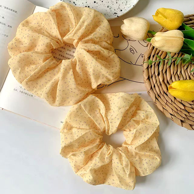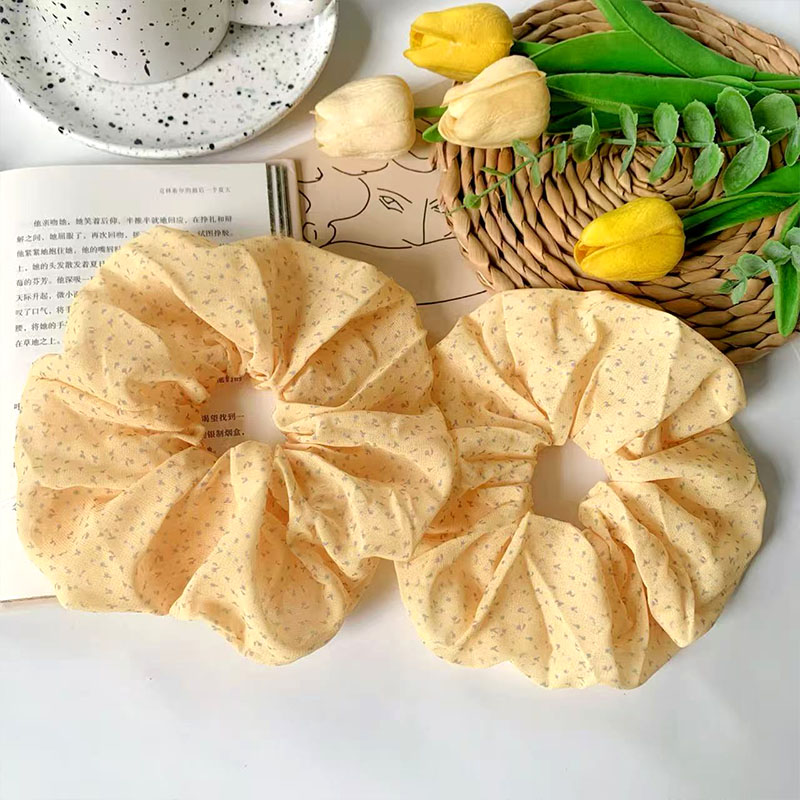木香花黄~嫩黄色碎花雪纺大肠发圈超仙小众感头绳扎发绳旅行发卡