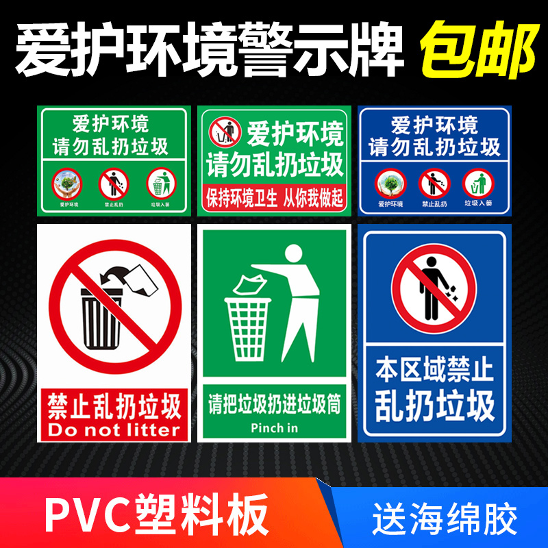 爱护环境温馨提示禁止乱丢垃圾烧烤烟头纸屑高空抛物随地吐痰保护本区域干净卫生人人有责提示警告标识标志牌