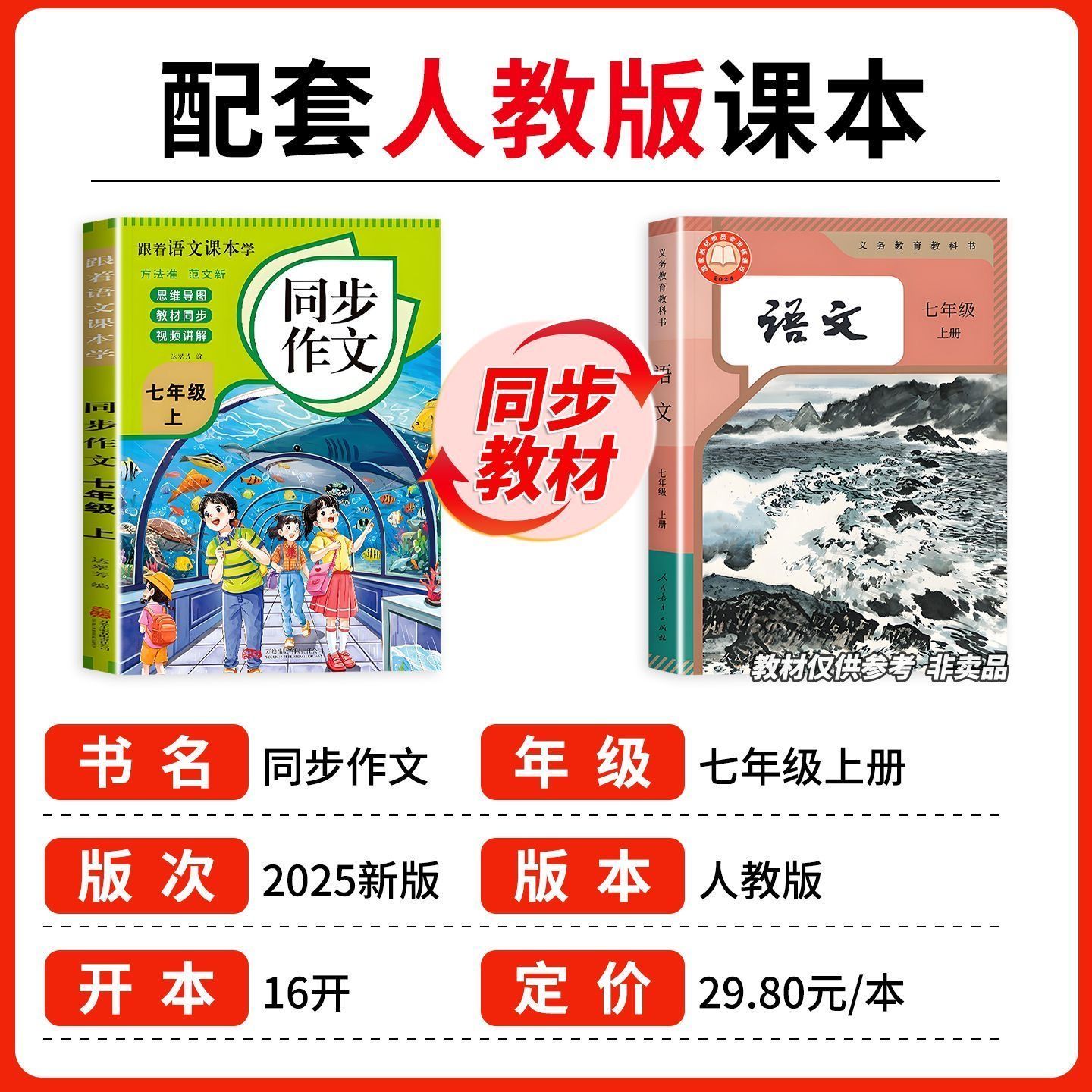 2025新版七年级上下册语文同步作文人教版 初一7下学期教材书同步练习册优秀作文高分范文精选满分作文辅导大全中学生写作技巧书籍