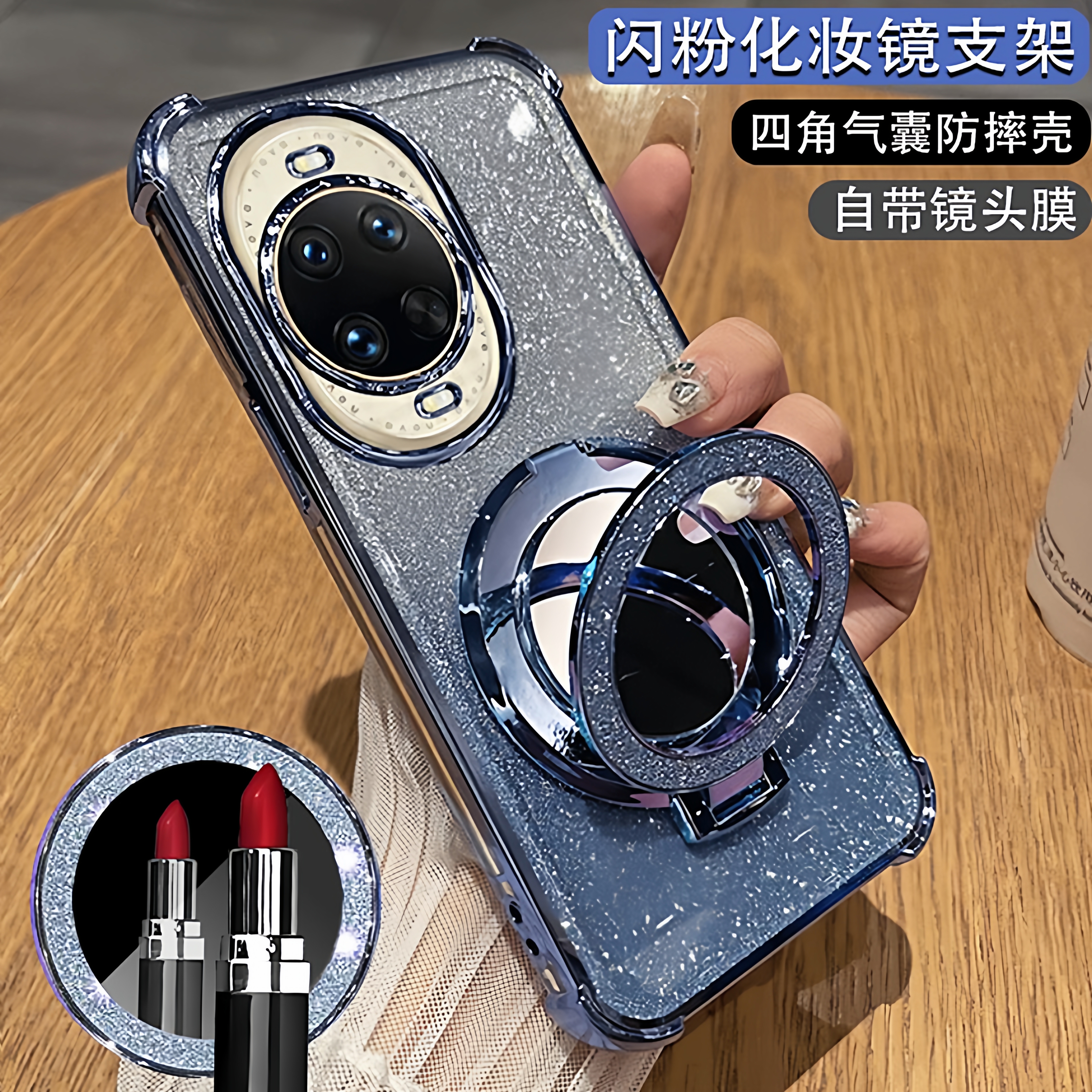 适用华为nova14手机壳女气囊防摔MIATLRT— AL100硅胶保护套带镜头膜14Pro高级化妆镜子支架UItra软壳透明薄O