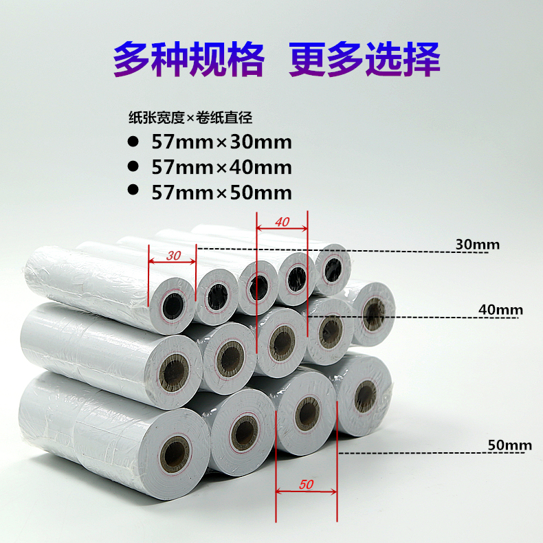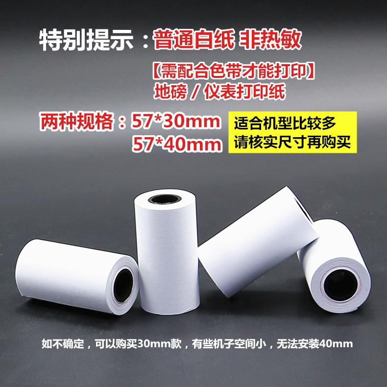 ERC09打印纸57x30mm打印卷纸57*40mm仪器仪表打印纸 非热敏 双胶收银白纸57x30针式微型票据纸 5.8 5.6噪声仪
