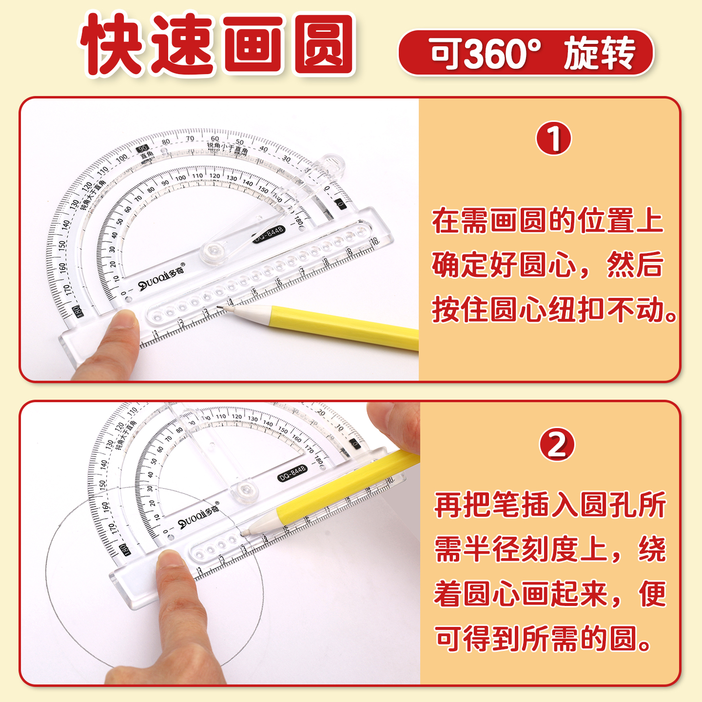 量角器小学生四年级四合一多功能活动角画角度神器尺角的认识数学