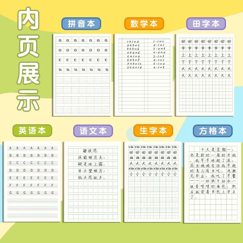 作业本小学生专用生字本拼音本田字格本幼儿园一二三年级语文数学英语拼音练习本中方格标准课文本子双行本