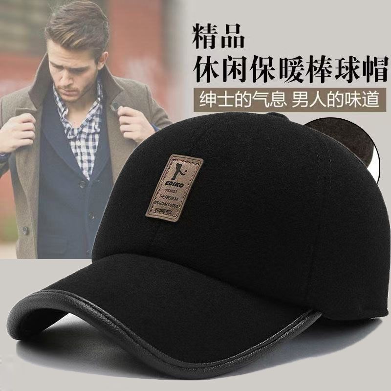 有被毛呢帽惊艳到新款鸭舌帽中老年毛呢保暖护耳均码可调节老人帽