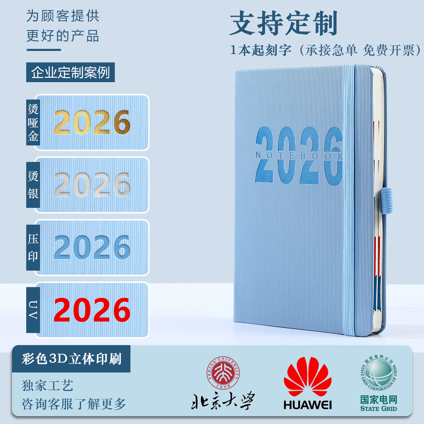 2026年日程本A5竖纹绑带365天计划本每日一页日历时间管理手册自律打卡笔记本子学习任务清单带日期定制logo