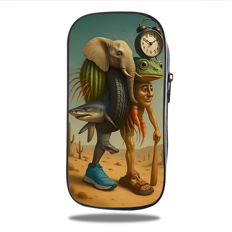 网红ins风山海经米国爆梗沙雕笔袋耐氪鲨鱼木棒人轱辘蛙神木猿ai抽象搞笑小学生初中生高中男孩铅笔袋文具盒