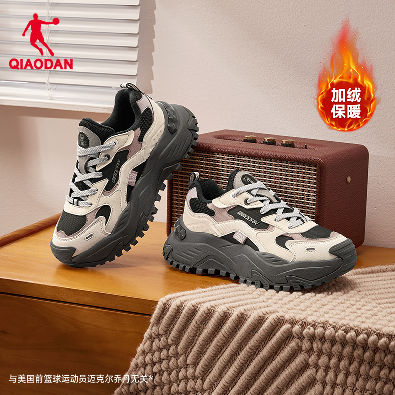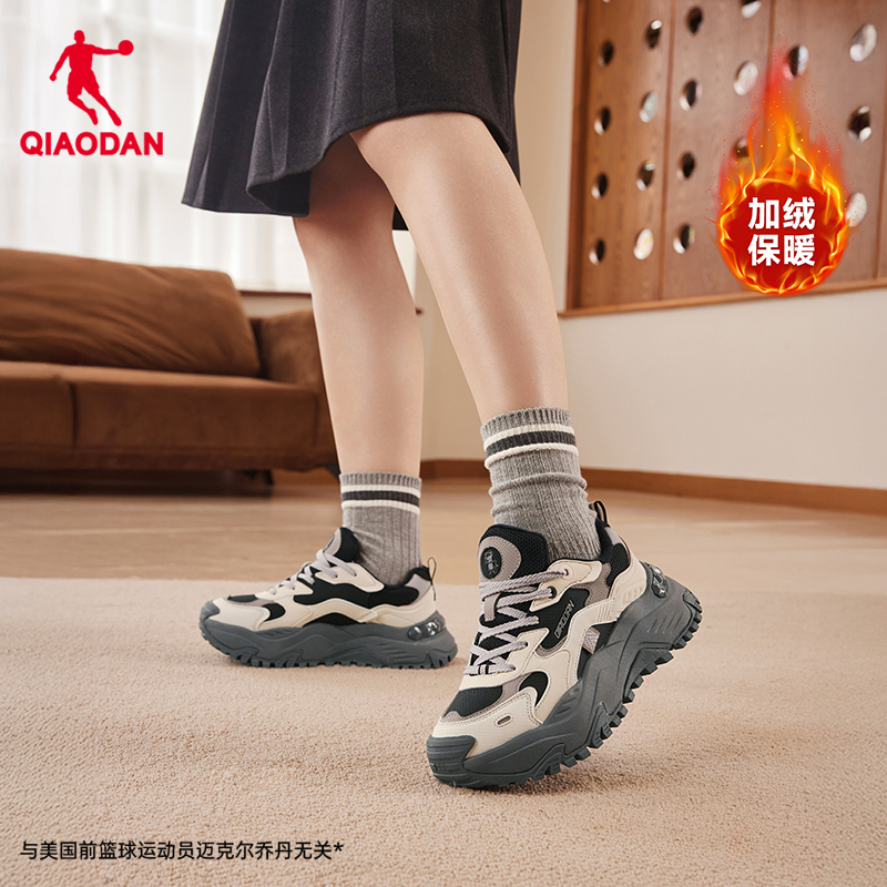 乔丹硬糖加绒保暖休闲鞋女棉鞋2025冬季厚底增高皮面防泼水老爹鞋