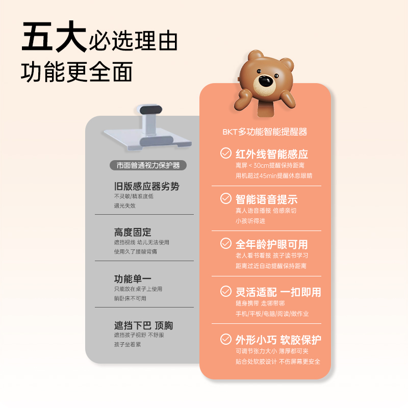 BKT视智能提醒保坐姿防低头写字姿势小学生提醒器护儿童写作业力学习阅读距离过近感应提醒