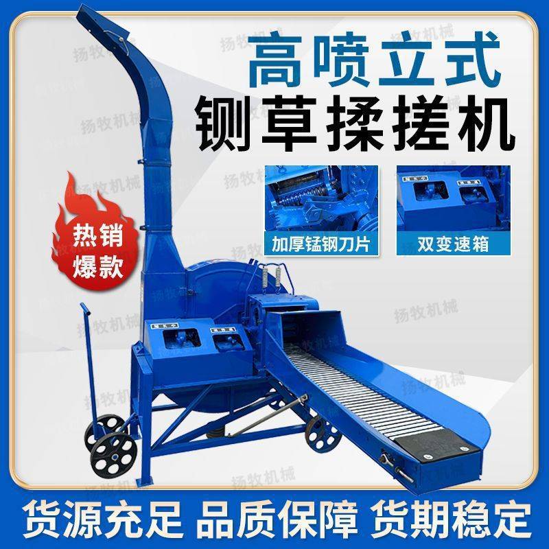 立式高喷铡草机新款小大型秸秆揉丝三相电干湿两用牛羊家用碎草机