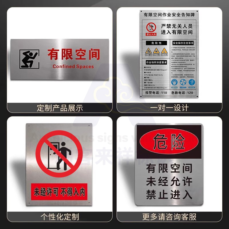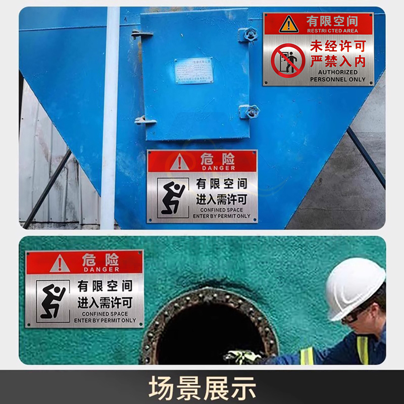 2026新版不锈钢有限空间标识牌非工作人员禁止入内警示牌有限空间作业安全警示告知牌未经许可受限标识牌