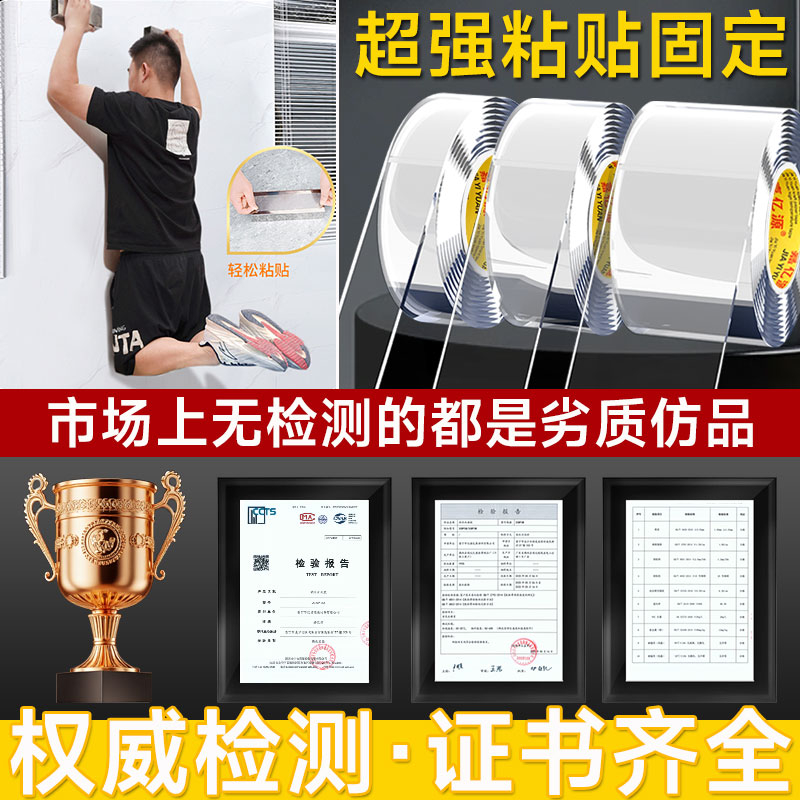 纳米双面胶高粘度强力无痕胶墙面不留胶结婚透明汽车专用胶带超强力魔力贴可撕防水耐高温车用固定贴片双面贴