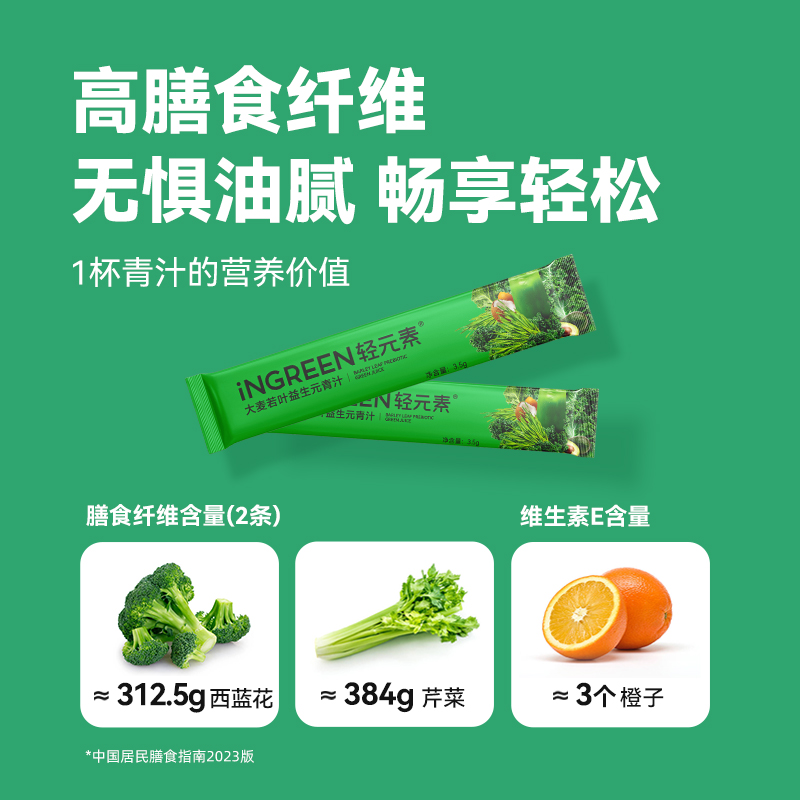 轻元素大麦若叶青汁30条益生元官方旗舰店膳食纤维羽衣甘蓝维生素