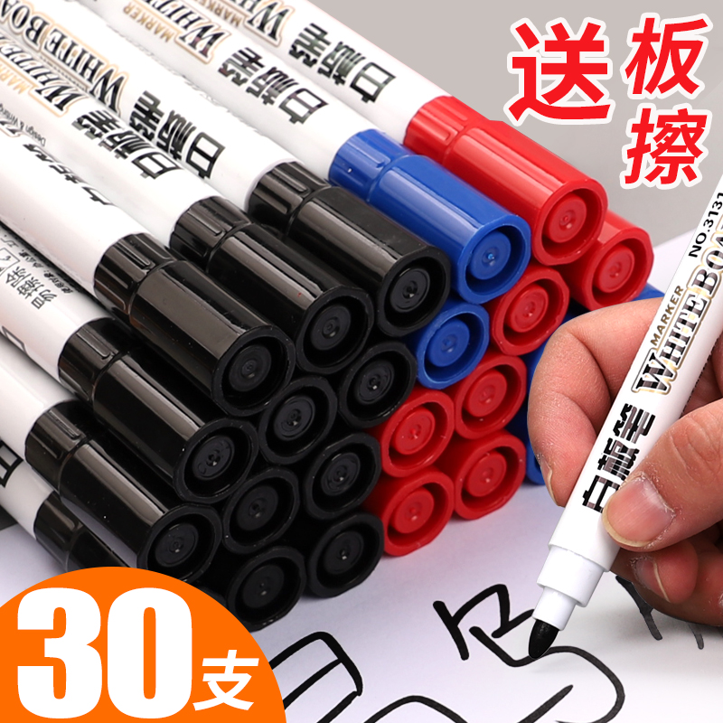 30支可擦白板笔教师用黑色水性儿童彩色红色蓝色黑板笔画板笔写字笔易擦写加粗大头记号笔可擦除专用细头