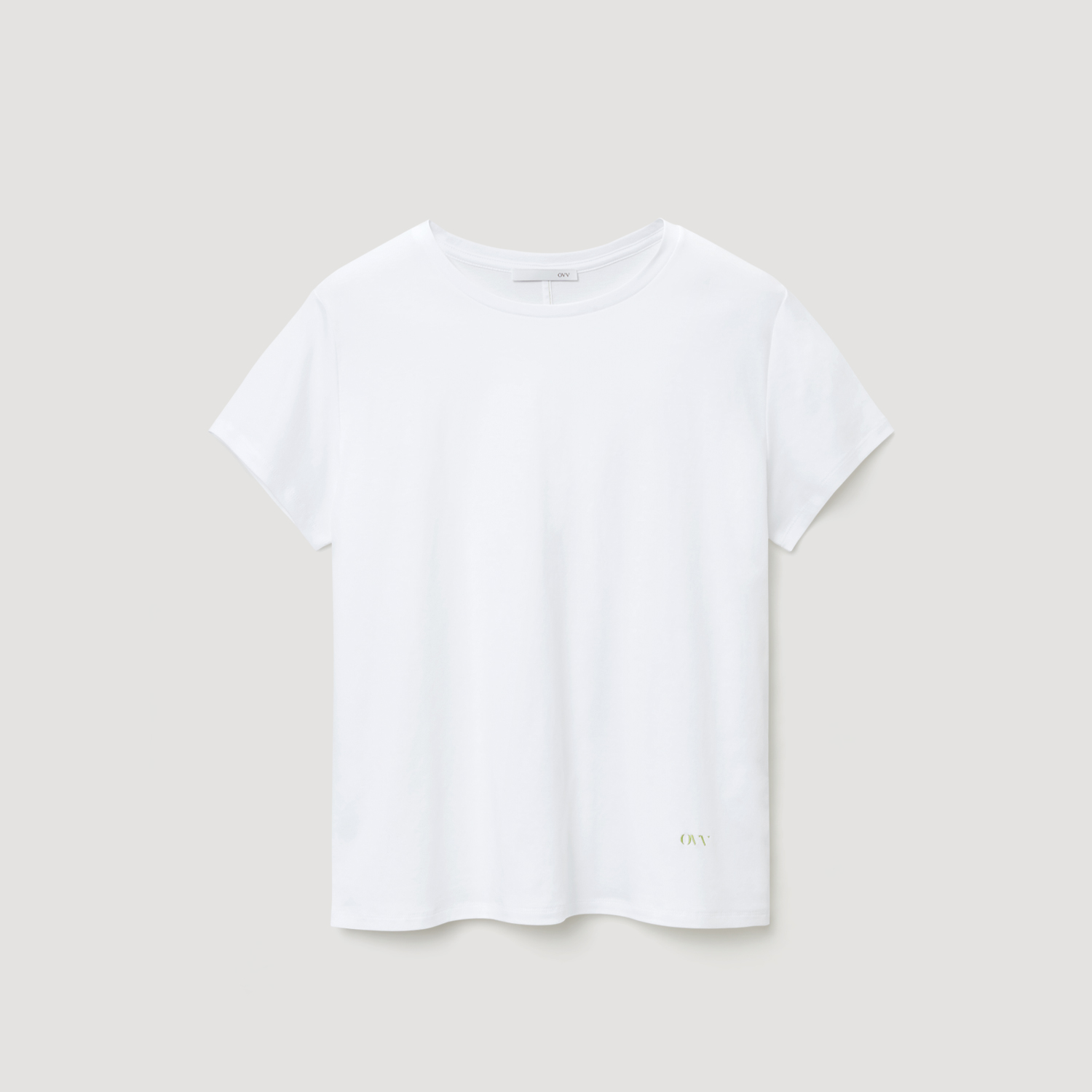 OVV春夏热卖女装简约舒适棉质刺绣基础圆领白色短袖T恤