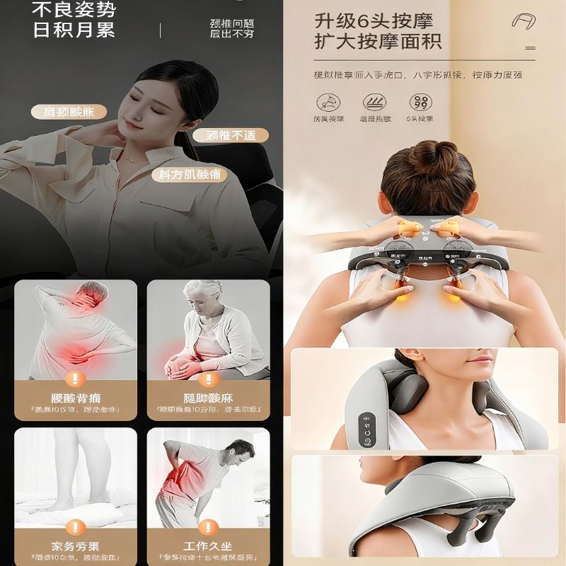 OTSPKQ颈椎按摩器颈椎腰背部斜方肌肩颈按摩仪全身揉捏热敷披肩