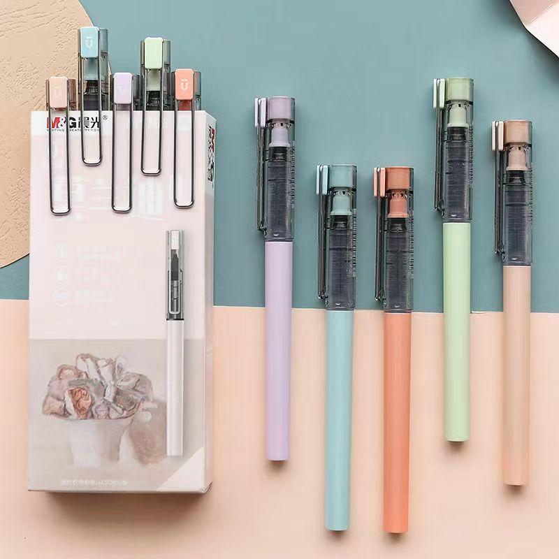 晨光莫兰迪色针管直液式走珠笔大容量0.5mm黑色速干学生用中性笔