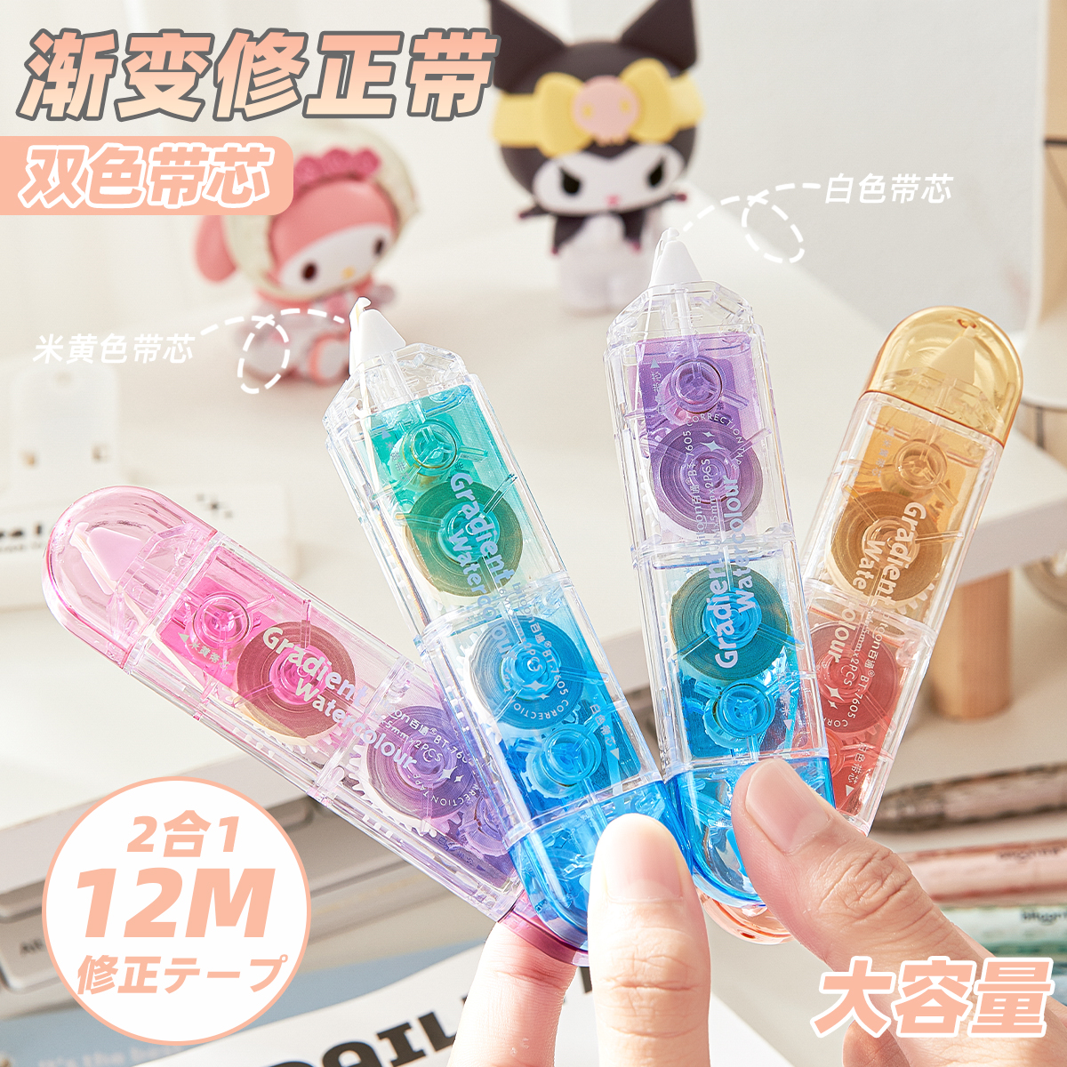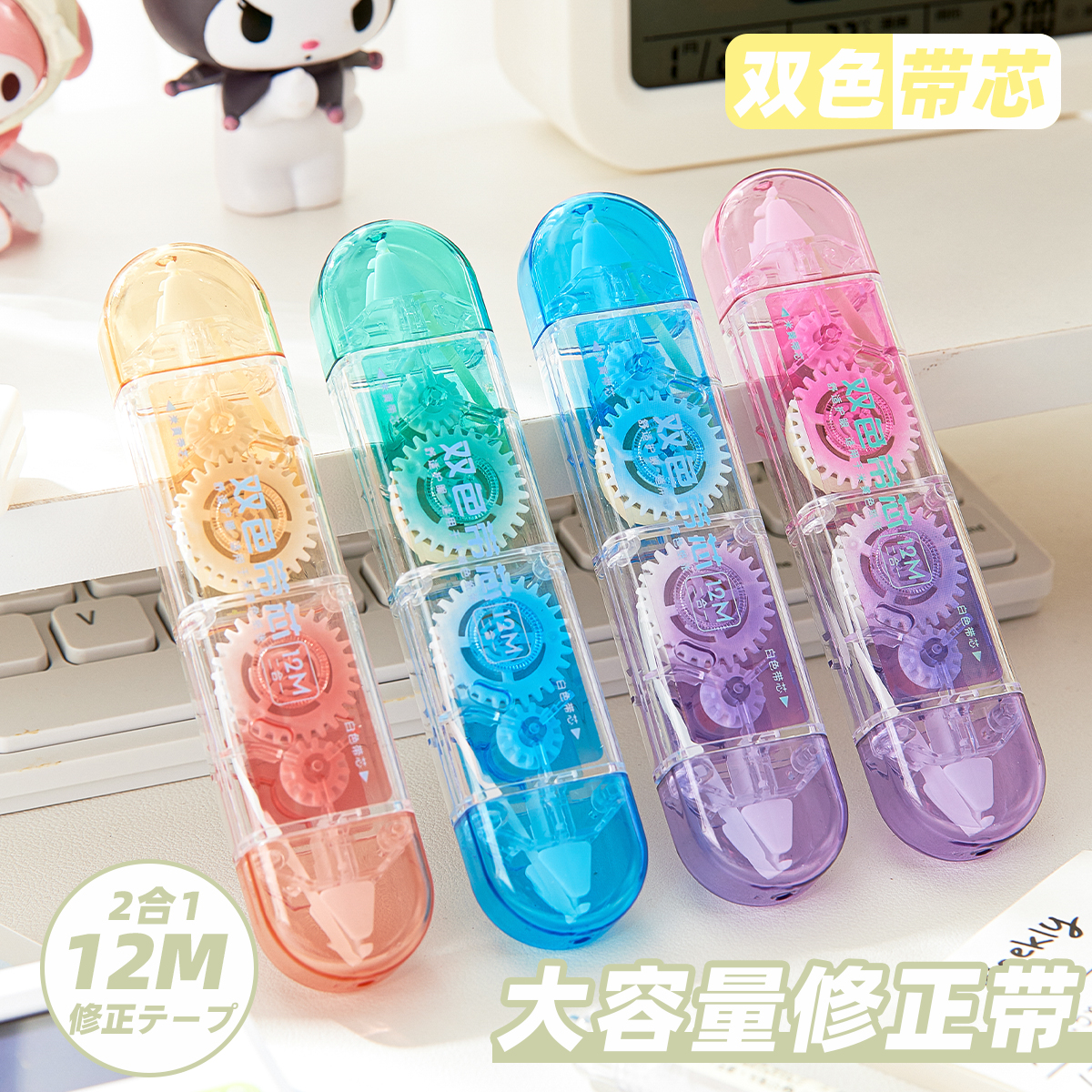 百通米黄色带芯双色双头修正带小学生专用涂改带大容量初高中生改正带男女生高颜值黑科技无痕修改带二合一