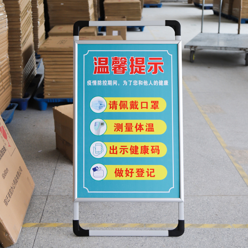 扫码登记温馨提示疫情防控提示牌防疫标识宣传请出示健康码行程码警示牌二维码展示牌新冠广告牌海报定制架子