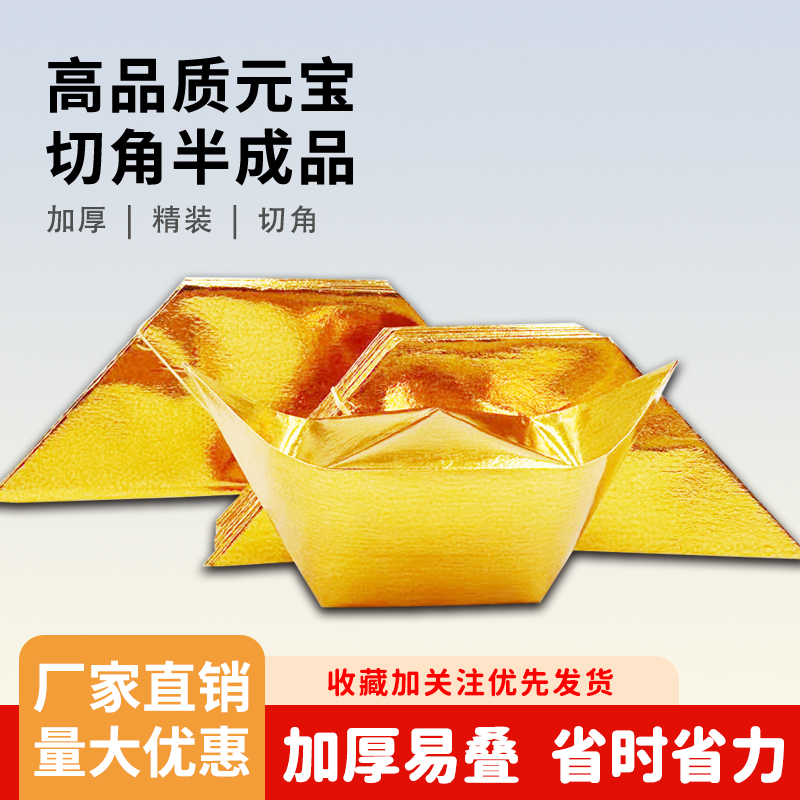 半成品元宝纸锡箔纸特价元宝4000个金纸银纸五彩印字厂家直销包邮折纸切角金色