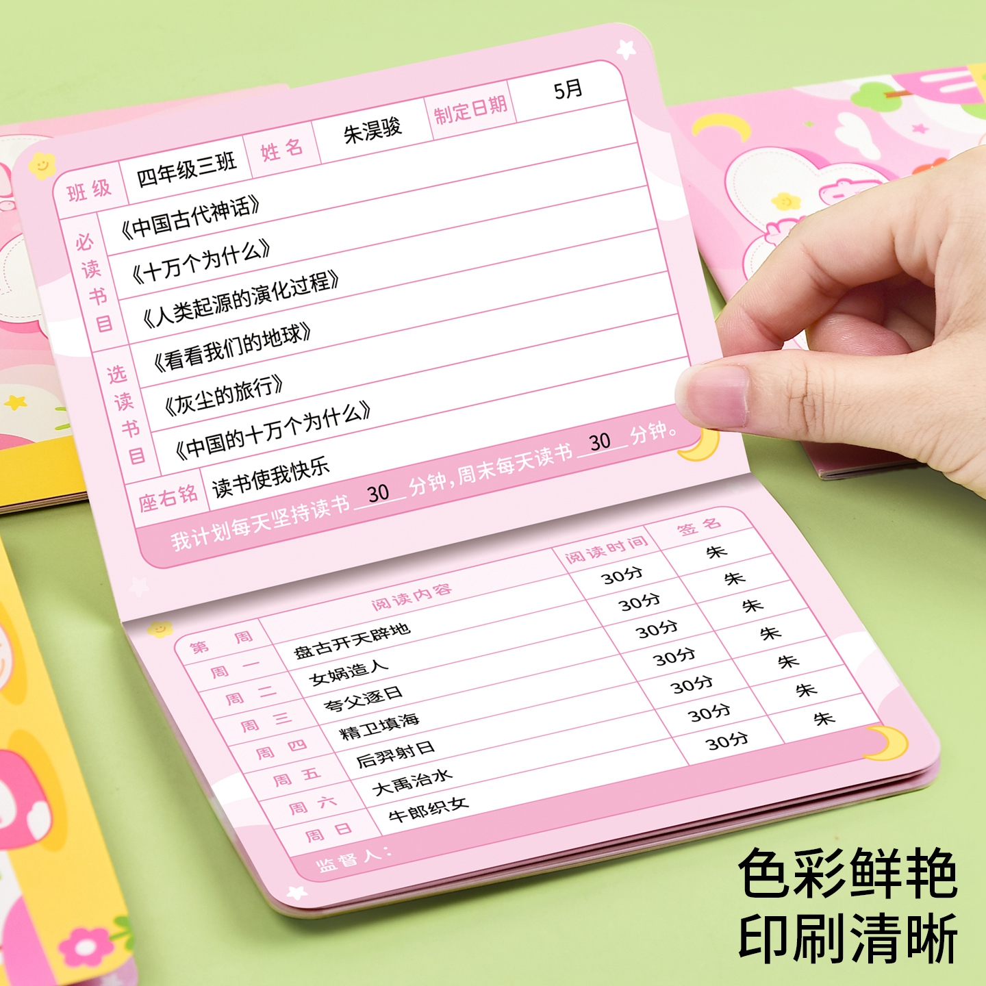小学生阅读登记册儿童幼儿园课外阅读存折可爱卡通读书打卡积分册每日打卡奖励集章记分册盖章心愿存折记录本