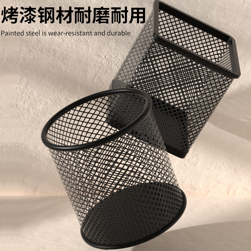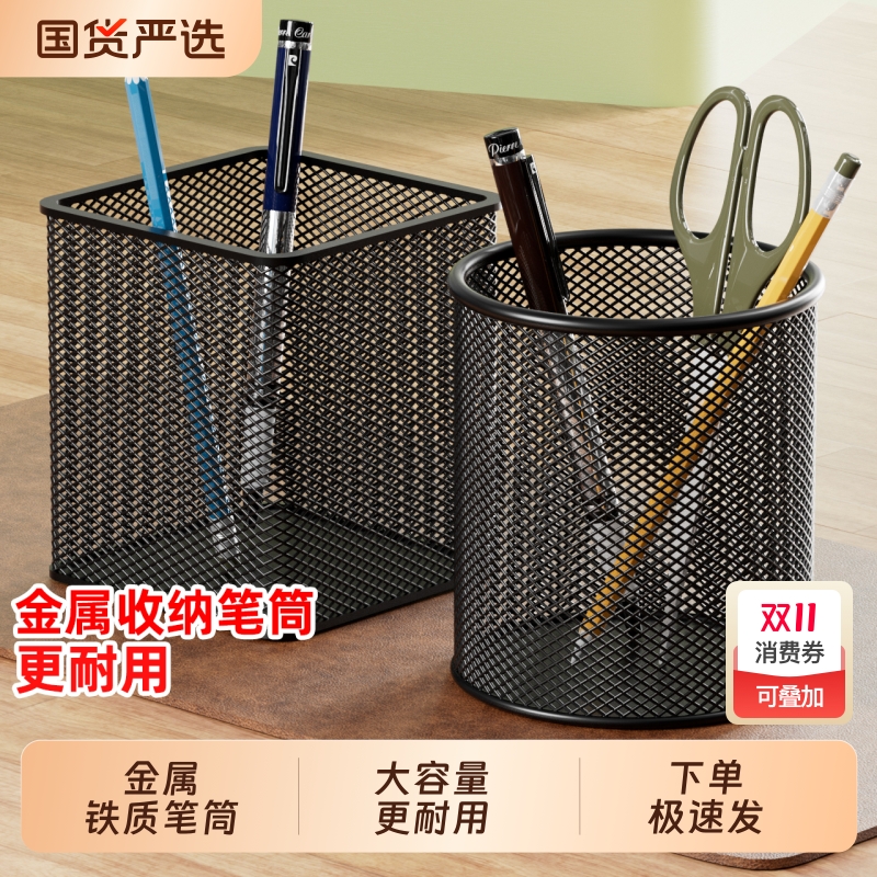 笔筒圆形金属网格笔插文具商务高级笔类收创意纳简约网纹时尚化妆刷收纳筒笔盒大容量多功能办公用品超大