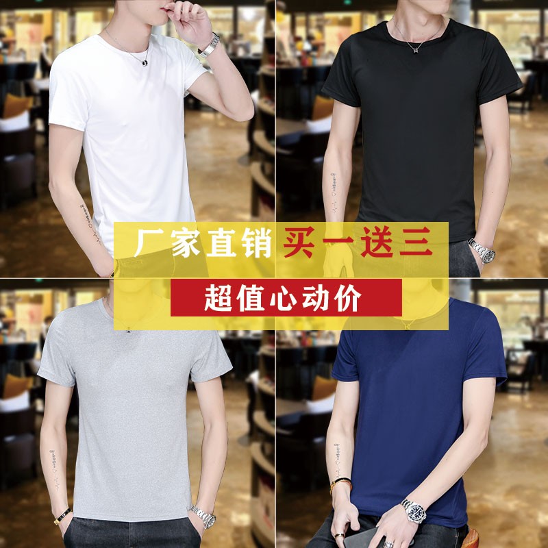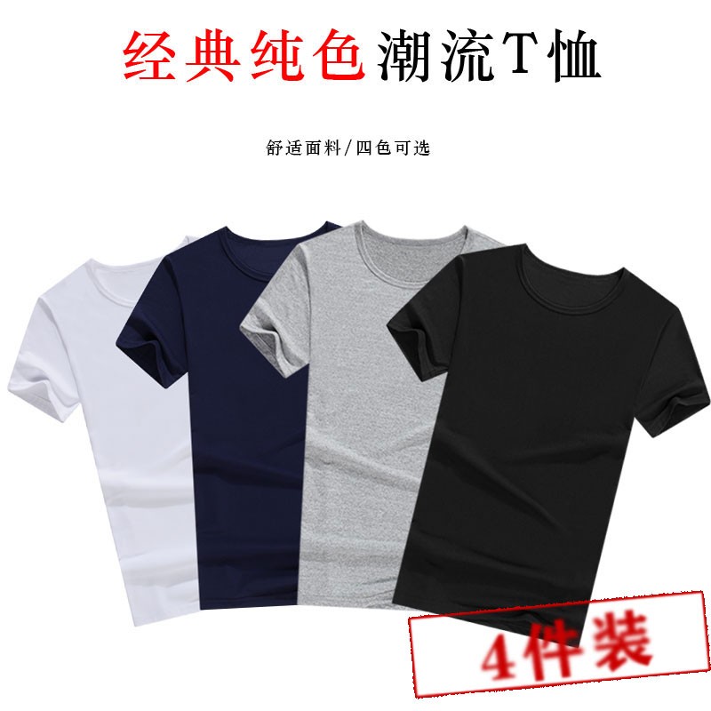 4件装新款纯白色短袖t恤男青少年韩版衣服修身潮流半袖打底衫上衣